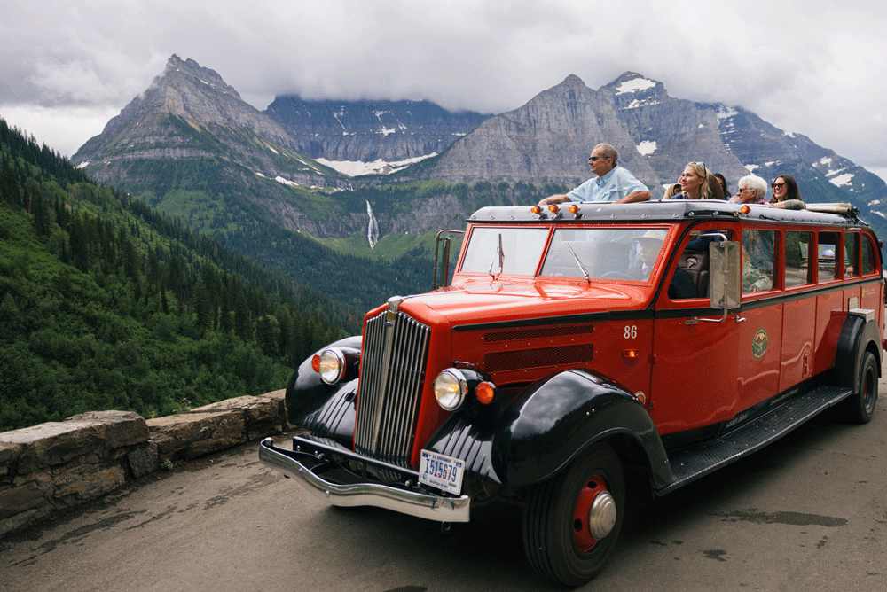 Book an iconic Red Bus tour for clients in Glacier National Park. Photo: Andy Austin
