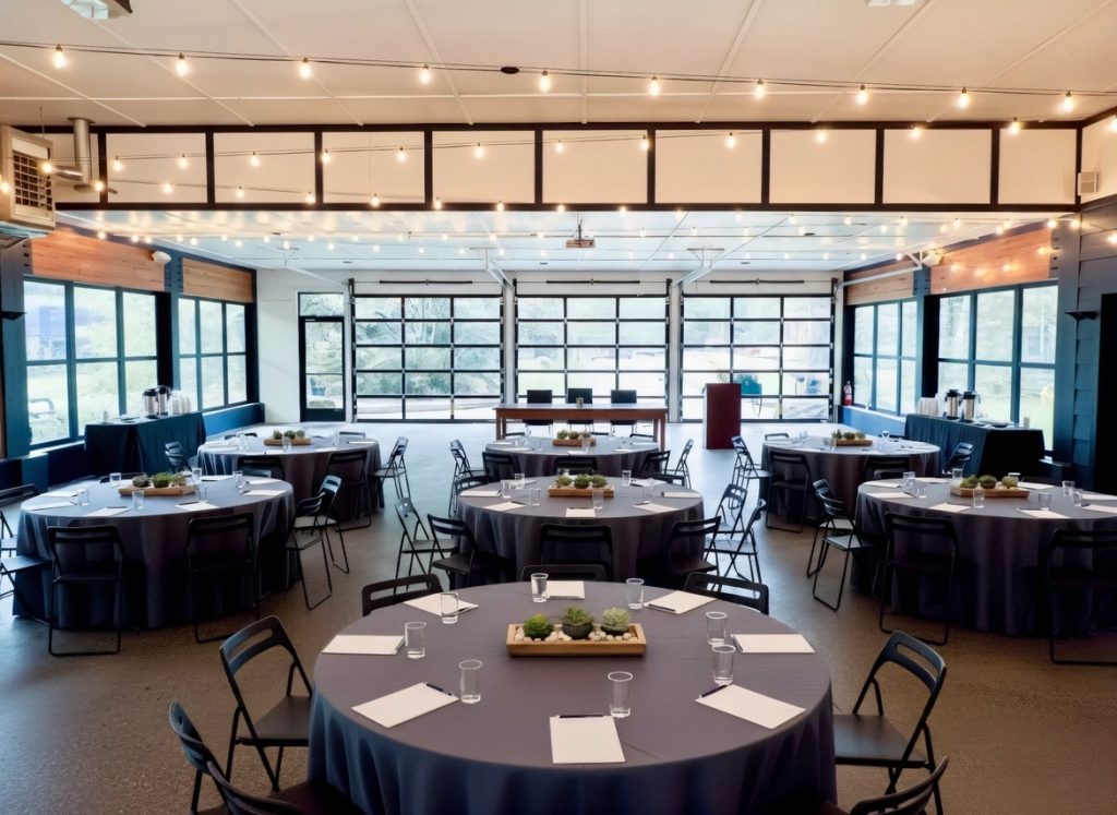 LOGE Glacier offers 2,400 square feet of dedicated meeting space with open-air garage doors that can be fully enclosed and heated, making it a comfortable, functional space year-round.